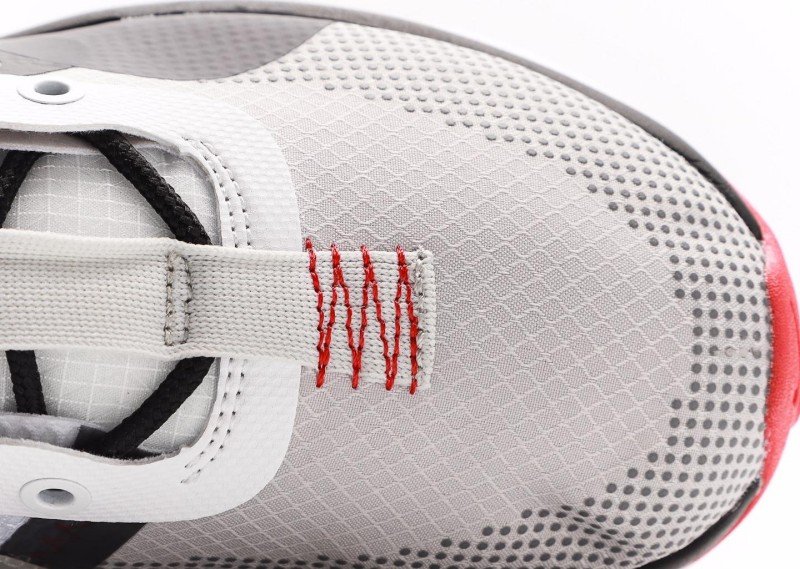 Grey-white-red colorway suitable for sports and casual occasions, pairing with athletic wear or jeans for energetic style, red accents become street highlight.