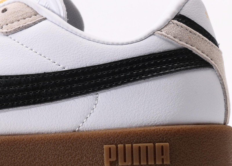 Premium white leather with black accents, gold PUMA logo, embossed heel branding, white lacing system, identical to专柜 specifications.