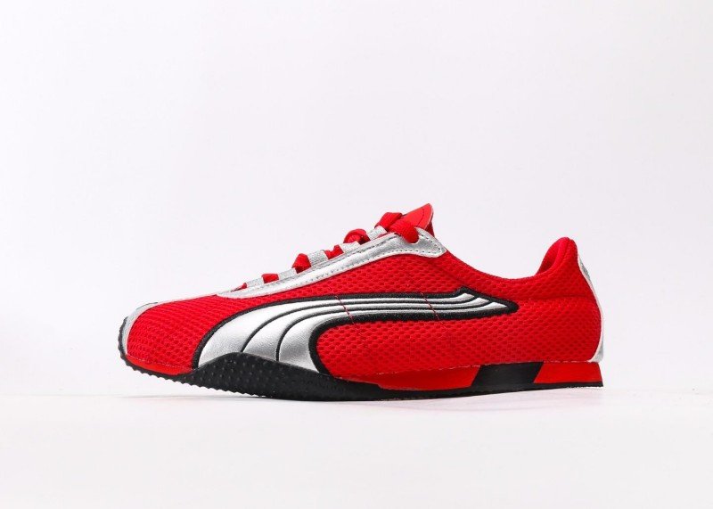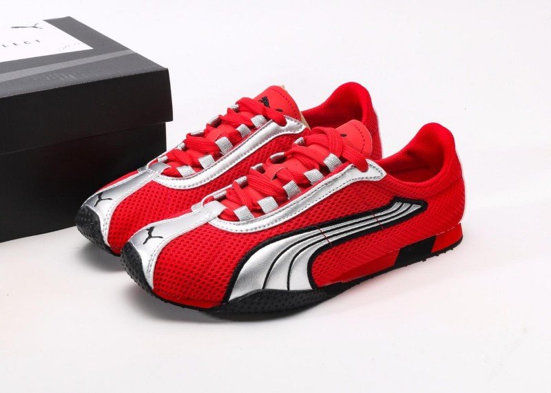 Puma H-Street OG features red-white-silver mesh colorblock, red mesh upper with silver racing stripes, black PUMA logo, anti-slip rubber outsole, 1:1 official packaging.
