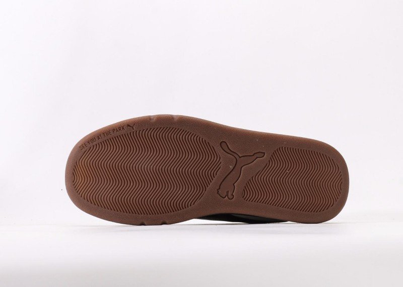 Premium leather with breathable mesh, gray PUMA logo, embossed heel branding, white lacing system, identical to专柜 specifications.