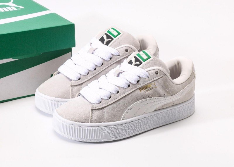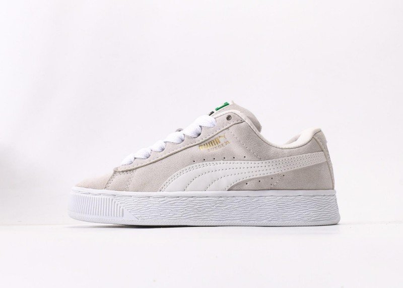 Puma Suede XL features off-white suede upper, white leather stripes, gold branding, anti-slip rubber outsole, 1:1 official packaging.