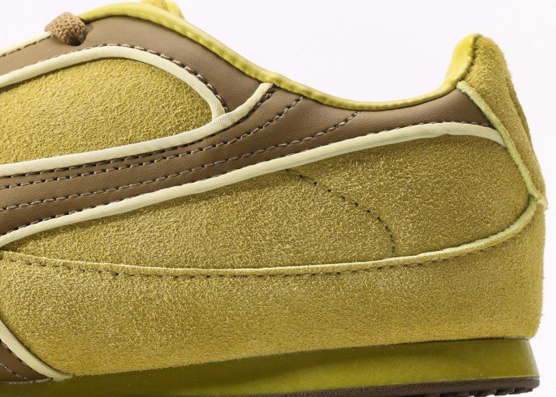Premium yellow suede with brown stripe detail, gold foil branding, dual lacing for customized fit, lightweight low-profile design, It is identical to the specifications of official retail stores.
