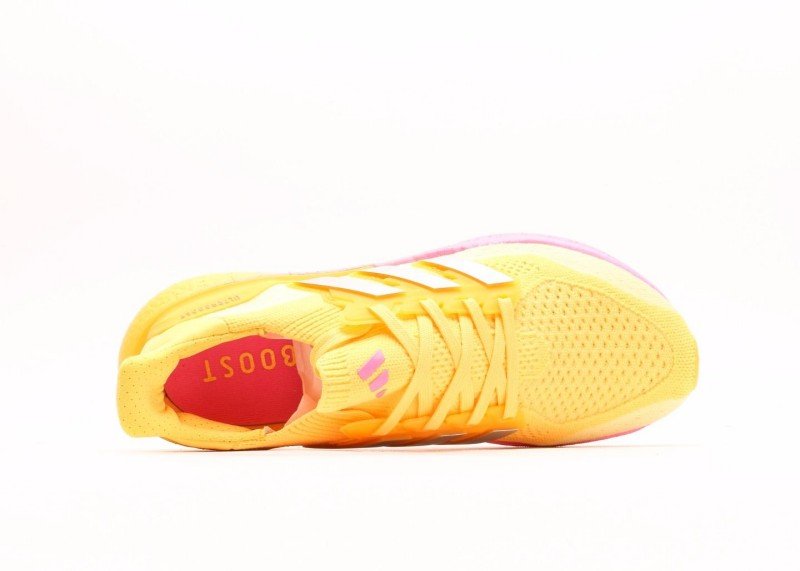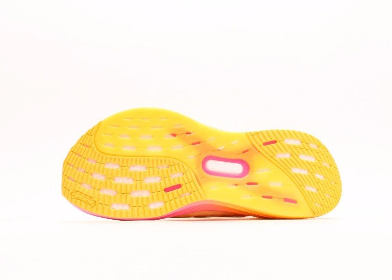 BOOST midsole provides excellent cushioning effect, energy rebound increased by 30%. Pink-yellow gradient sole adds visual highlights, Bright contrast between yellow and silver, fashionable and technological.